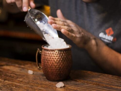 When it comes to clear and cloudy ice, restaurants have an interest in providing clear ice to customers. Restaurants typically purchase state-of-the-art ice machines that use a vastly different cooling process than what most of us have at home. Commercial ice makers have jets that spray small amounts of water into ice molds. Instead of freezing ice cubes all at once like we do when we place an ice cube tray in the freezer, these jets allow ice cubes to form in layers. This prevents air bubbles from convening in the middle and creating a cloudy aesthetic.
